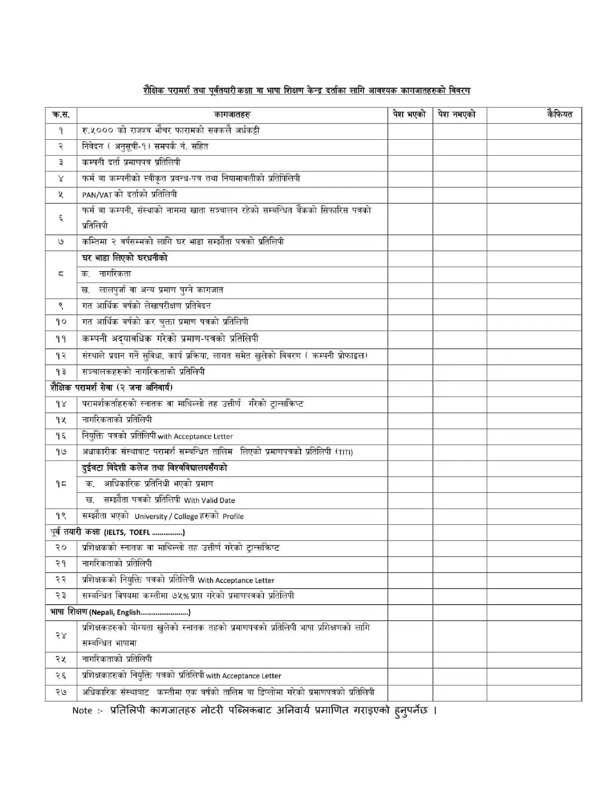 Compliance Checklist for Education Consultancy License Nepal