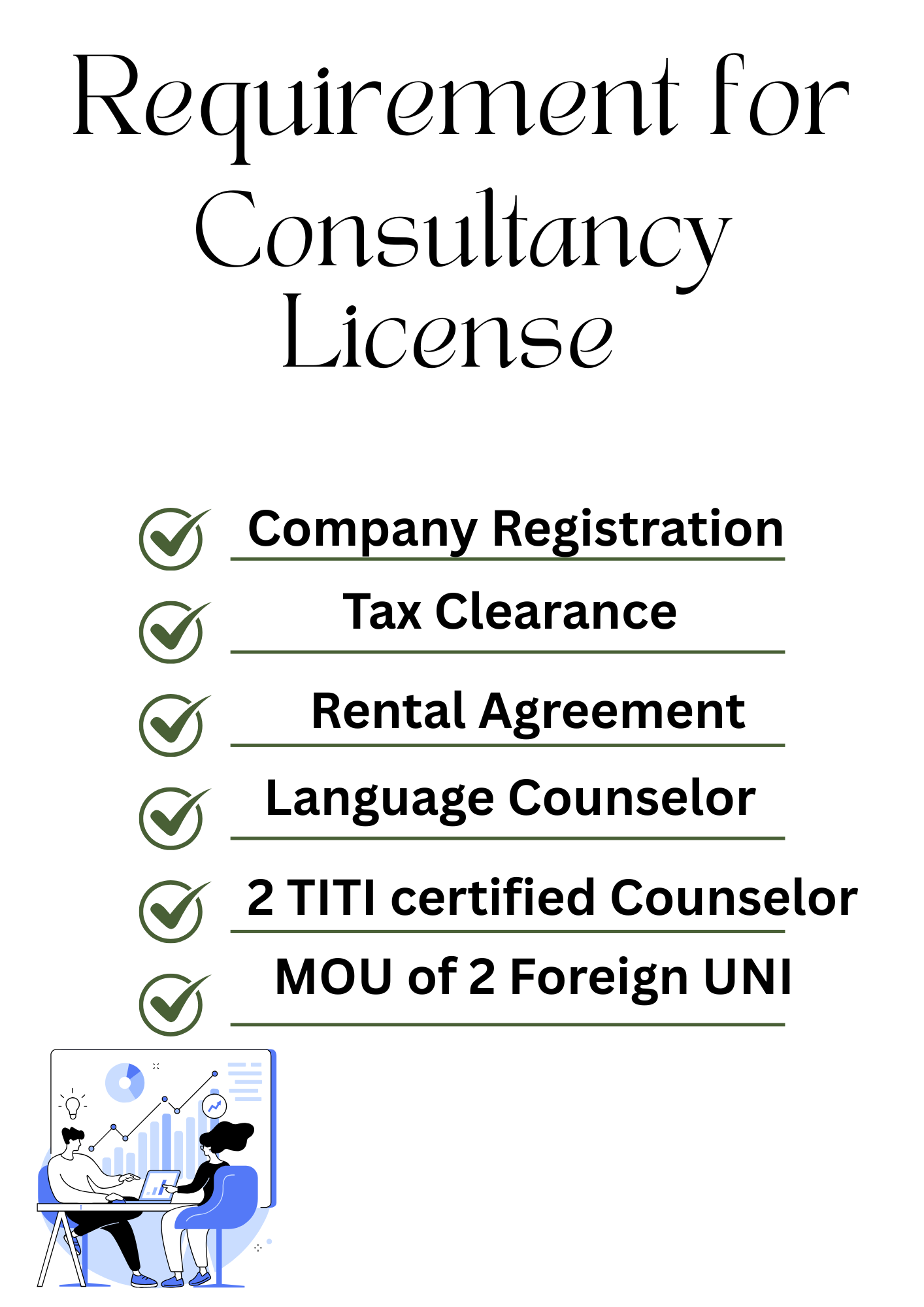 The education consultancy license Nepal application process requires fulfillment of several prerequisites. These requirements have been designed to ensure that only qualified and properly equipped entities operate in this sensitive sector.