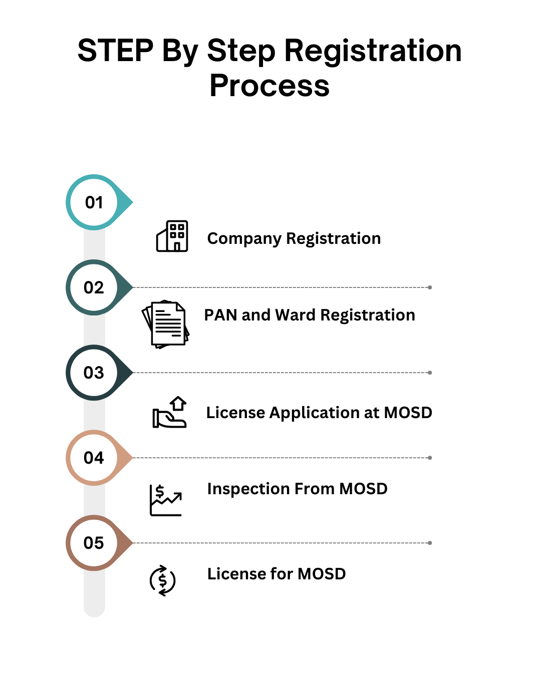 - Registration at the Office of Company Registrar (OCR) as a Private Limited Company