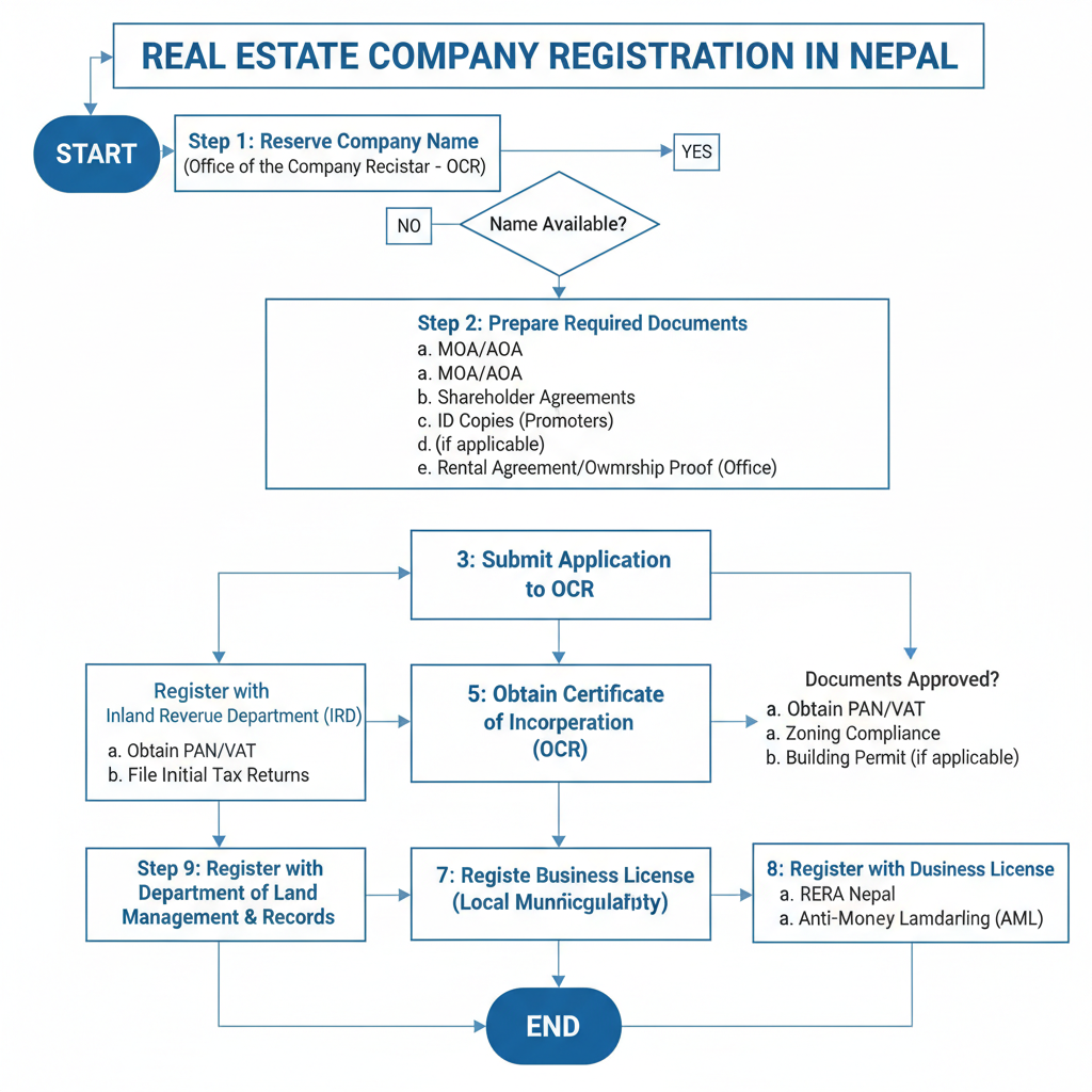 Starting a real estate company registration in Nepal can be both exciting and challenging for first-time entrepreneurs. The process involves navigating through various legal requirements, documentation procedures, and government approvals. However, with proper guidance and understanding of the registration process, establishing your property business can be accomplished efficiently. This comprehensive guide will walk you through every step of real estate business registration in Nepal, providing practical insights to help you launch your venture with confidence.